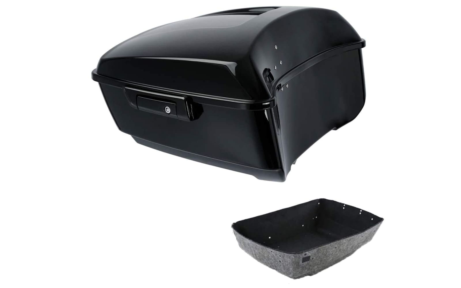 A luggage kit with trunk, mounting rack, and backrest pad that transforms a Harley Touring motorcycle into a long‑haul ready cruiser with significant space for gear and added passenger comfort.