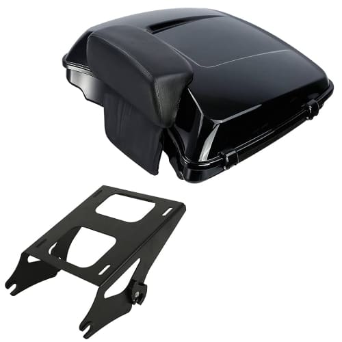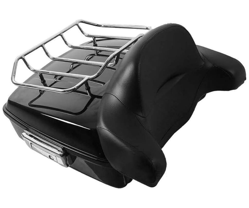 A luggage kit with trunk, mounting rack, and backrest pad that transforms a Harley Touring motorcycle into a long‑haul ready cruiser with significant space for gear and added passenger comfort.